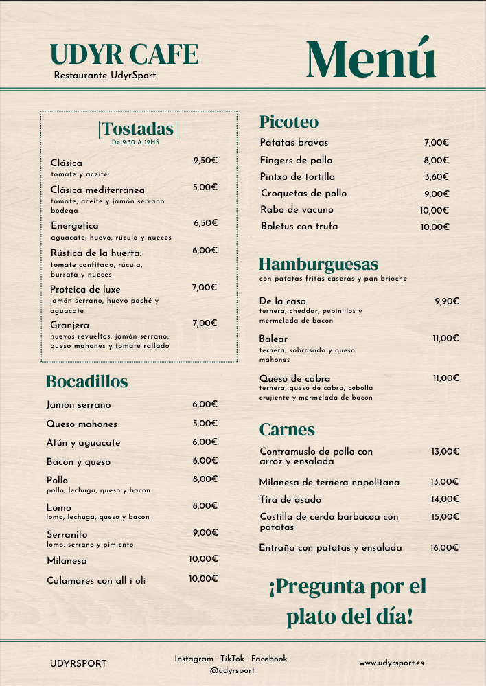 At UDYR SPORT, located in Son Sardina, near the Son Castelló industrial park, we have a bar-restaurant that combines comfort and great cuisine to complement your sports experience.
